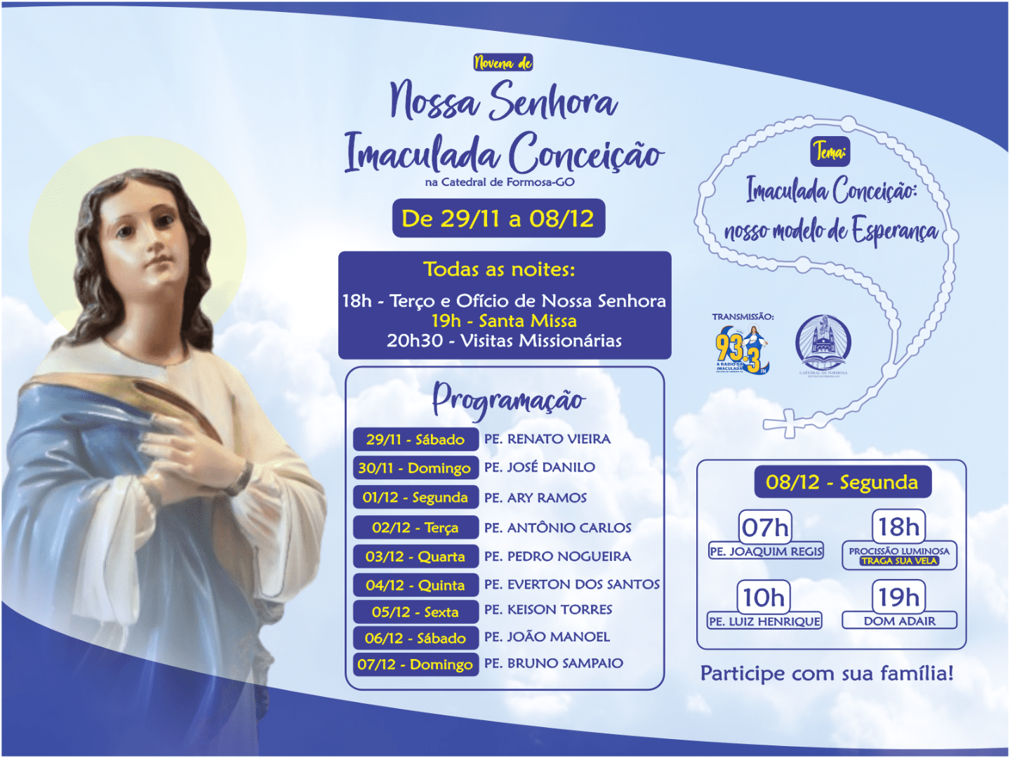 Horários de transmissão: Domingos às 10h e Missas Solenes. Participe conosco!!!
